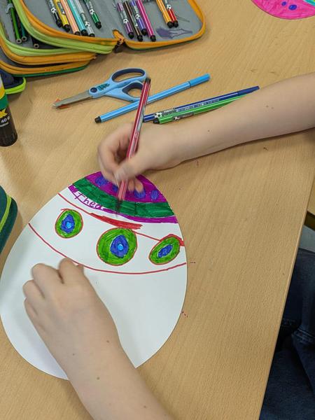 Die Kinder de Klasse 3b haben mit Unterstützung von Eltern fleißig österliche Dinge gebacken und gebastelt.